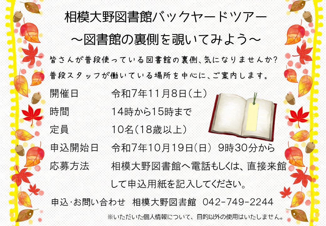 相模大野図書館では、10月10日(金曜日)~11月12日(水曜日)に【秋の読書週間イベント】を開催します。
